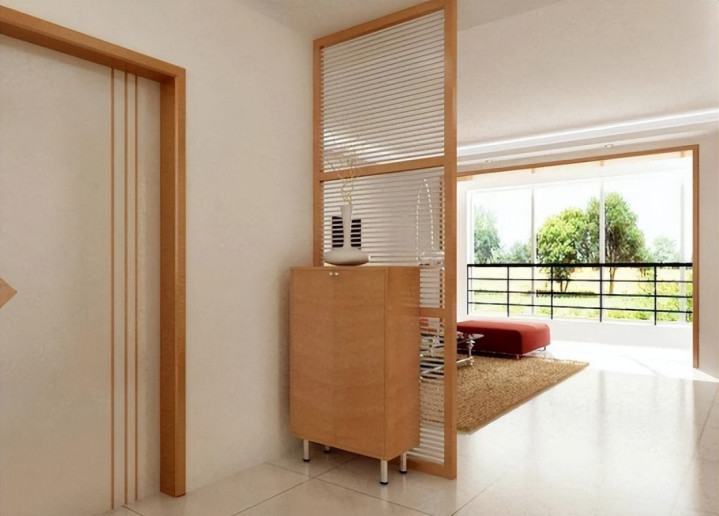 在入户门和客厅之间,打个柜子,或者立个玻璃屏风。
